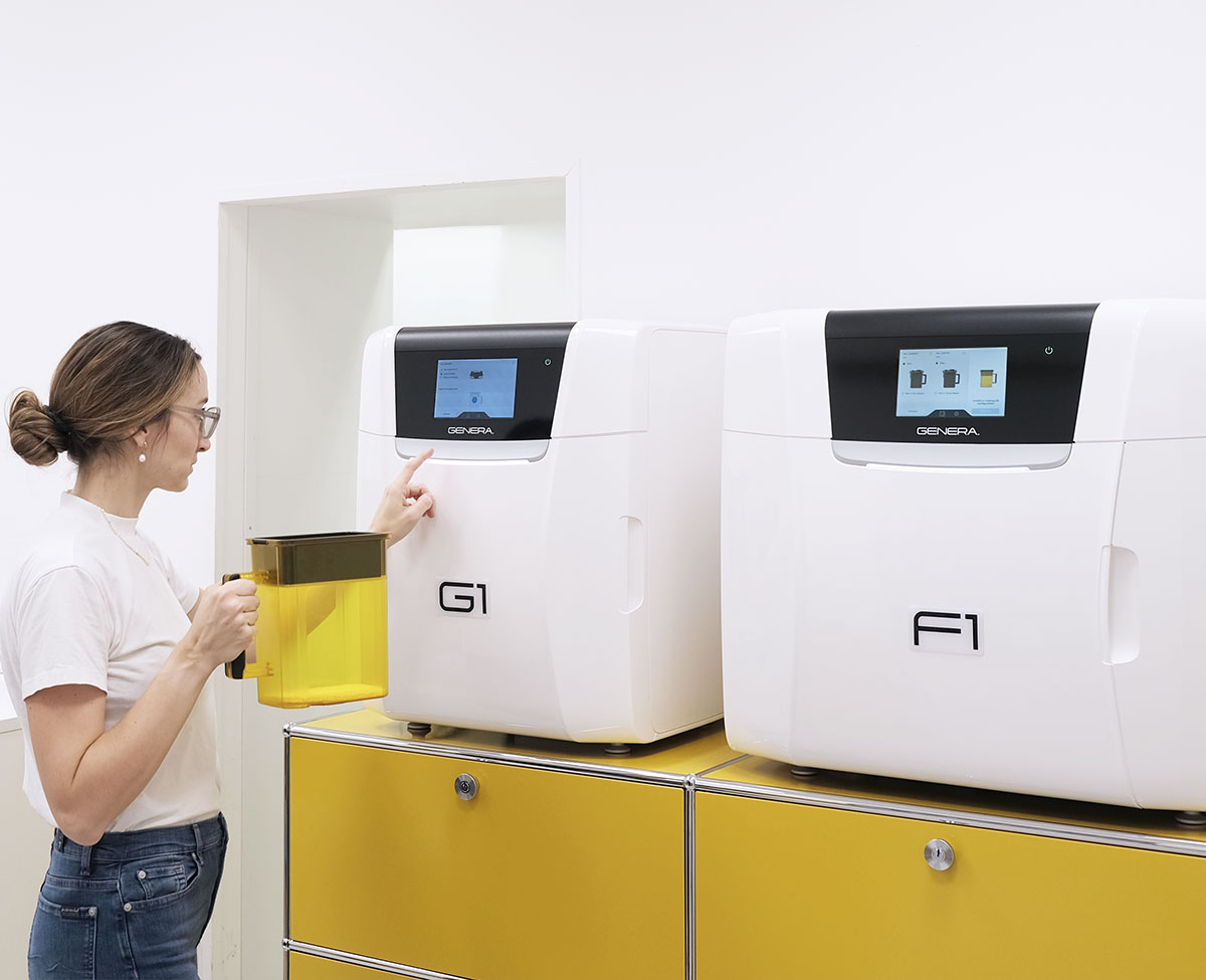 Der Desktop DLP 3D-Drucker G1 und das Nachbearbeitungssystem F1 bilden eine perfekte Symbiose zur Herstellung präziser, wiederholbarer und rückverfolgbarer Serienkomponenten.