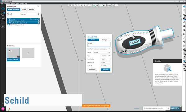 • Teilebeschriftungen & Etiketten: Prägen oder erhaben drucken Sie Text, Seriennummern oder Logos direkt auf dem Modell – automatisiert, reproduzierbar und rückverfolgbar.